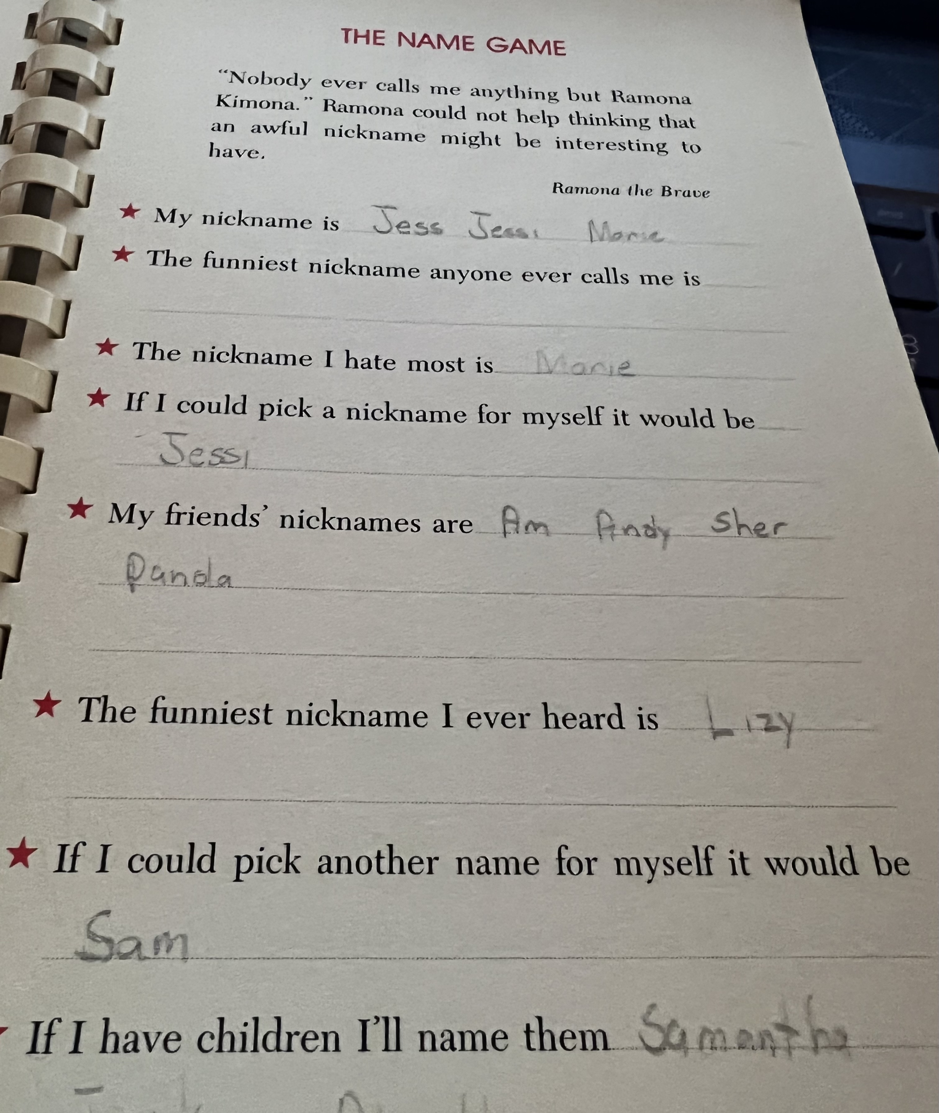 I love this story, but my friends, as beautiful as this story is, and as big a blessing as it is to tell it, I must share the last part. When Sammie was about three years old my parents, who were practically our neighbors, sold their house. We were a military family and so my parents had done such a good job and holding onto our things and storing them away for us. While they were packing up their home my mom found my “The Romona Quimby Diary” that I had bought at a book fair in second grade. Per usual, I had begun this journal but never completed it. I thumbed through the pages admiring my handwriting and the cute ways I wrote things on the first few pages. I turned to the last page with my final entries on it (only about 20 pages of the 100s in the book). On the very last line of the page it asked a question. It said, “If I have children I’ll name them,” and the first name my eight-year-old self wrote was, Samantha.