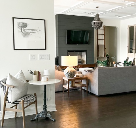 To recreate this space there are a few simple ingredients. Our wall is no more than three feet wide so its a small area and kind our in the open of our home. It is also a space you can see from the front entry. As you know, my go-to for any new space is black, white, green and wood. These are classics always combine well and feel timeless.