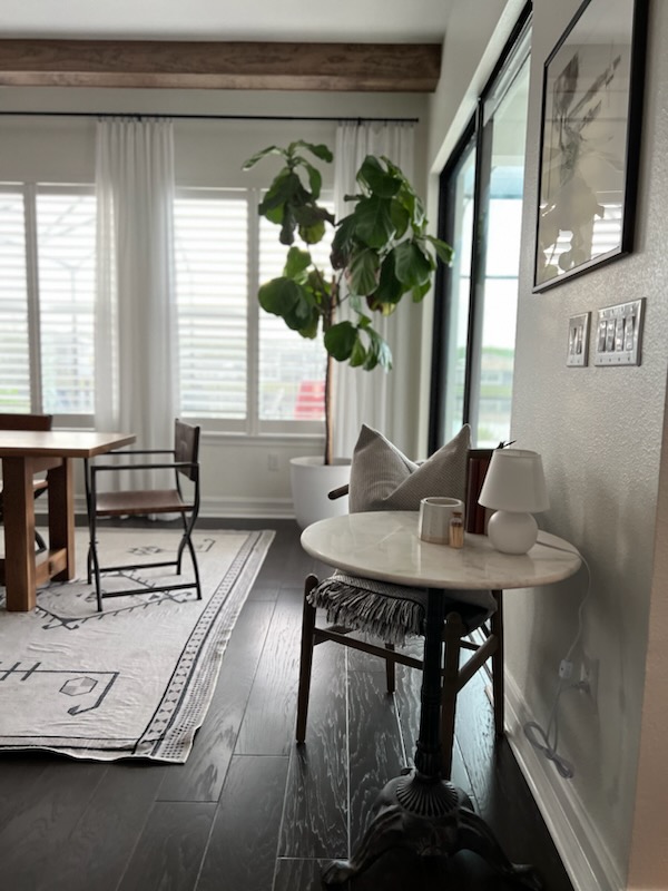 Sometimes the small spaces in your home bring all the cozy you’ve been looking for. Our home has very tall walls and since my walls are white, at times a bare space can feel…well bare. This little bistro table from World Market I used as an end table in my living room for a very long time. But then I found that trashed end table shown in the pics above and it just fit my living room so much better.